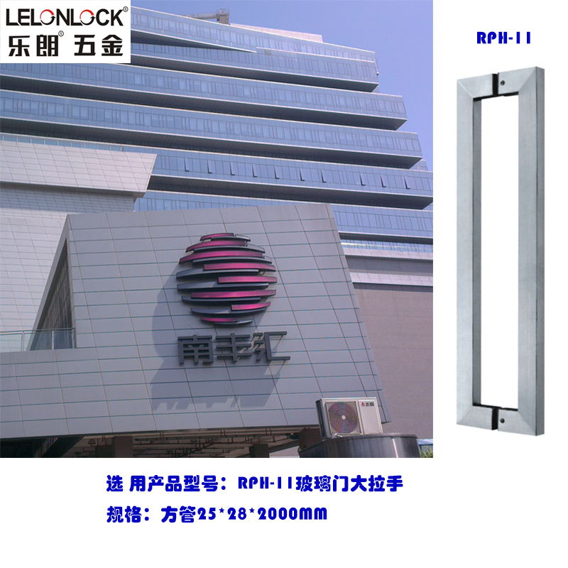 廣州南匯豐涵蓋高端汽車展示、國際時(shí)尚購物、甲級(jí)寫字樓、專業(yè)展館、五星級(jí)酒店等,選用廣州樂朗五金的玻璃門拉手RPH-11方管,長度達(dá)2米,對(duì)表面砂光處理要求很高,客人非常滿意!
