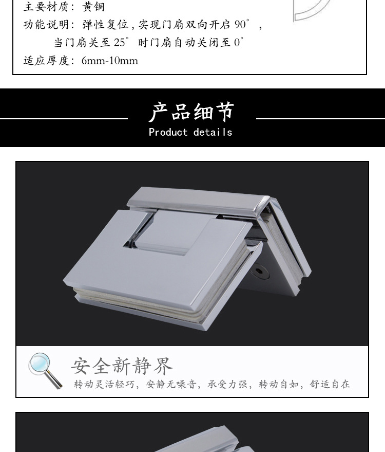 2、主要用于各種玻璃門、淋浴房門等。夾6-10mm玻璃