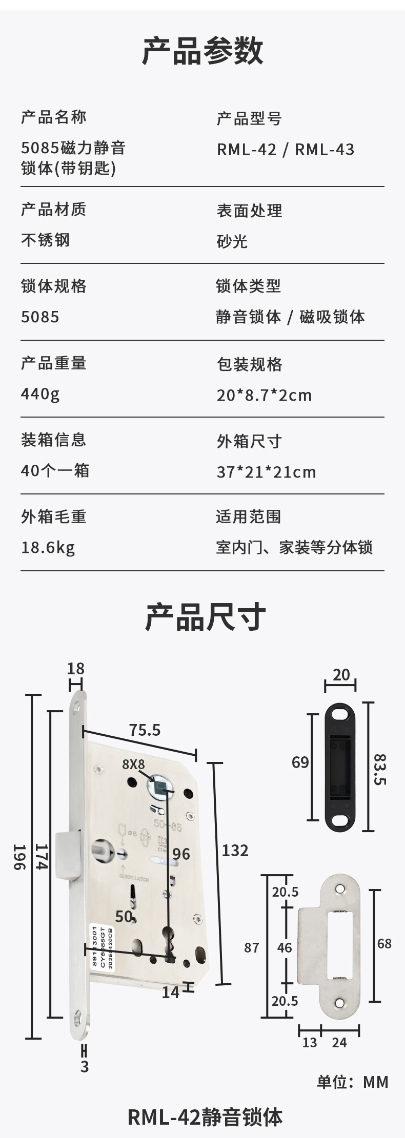 RML-42 RML-43 帶鑰匙靜音磁力鎖體