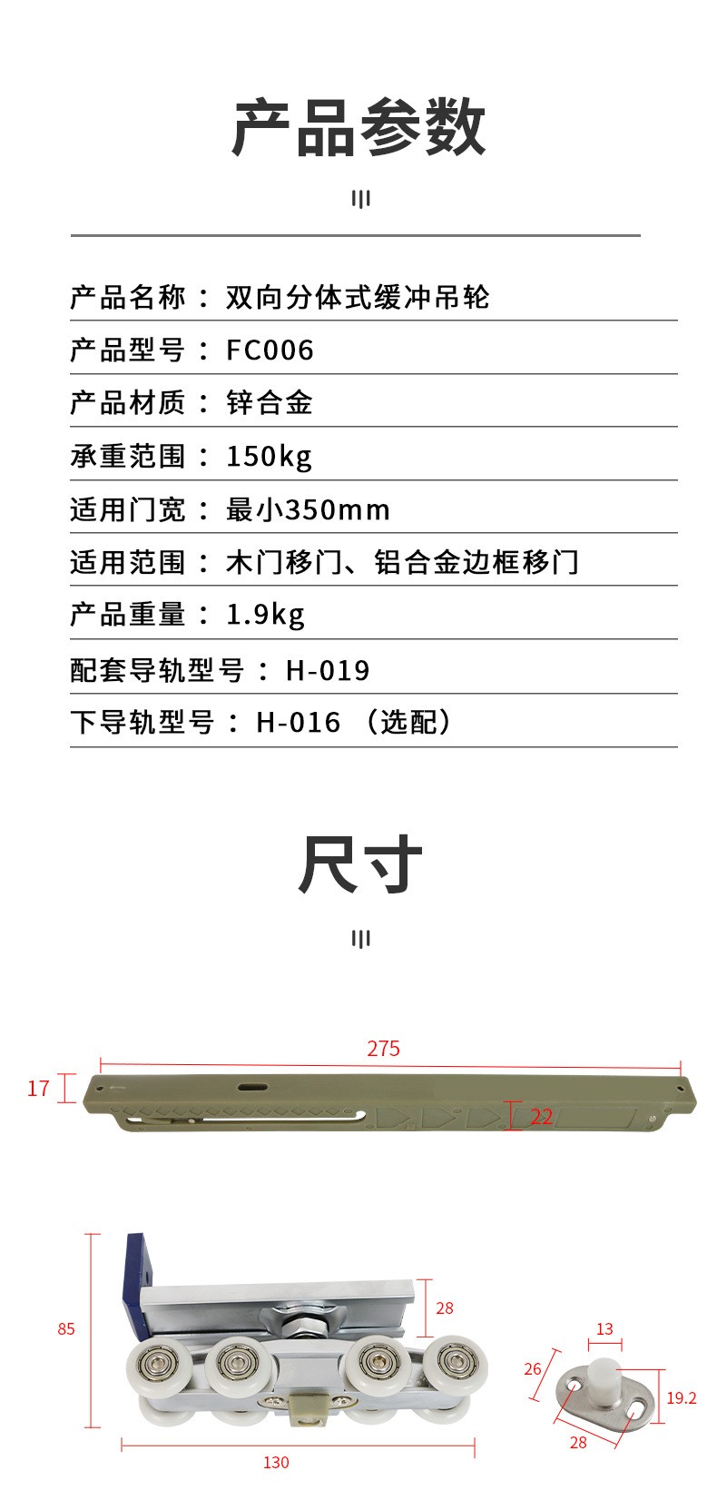 FC006 雙向緩沖分體式移門(mén)吊輪吊軌