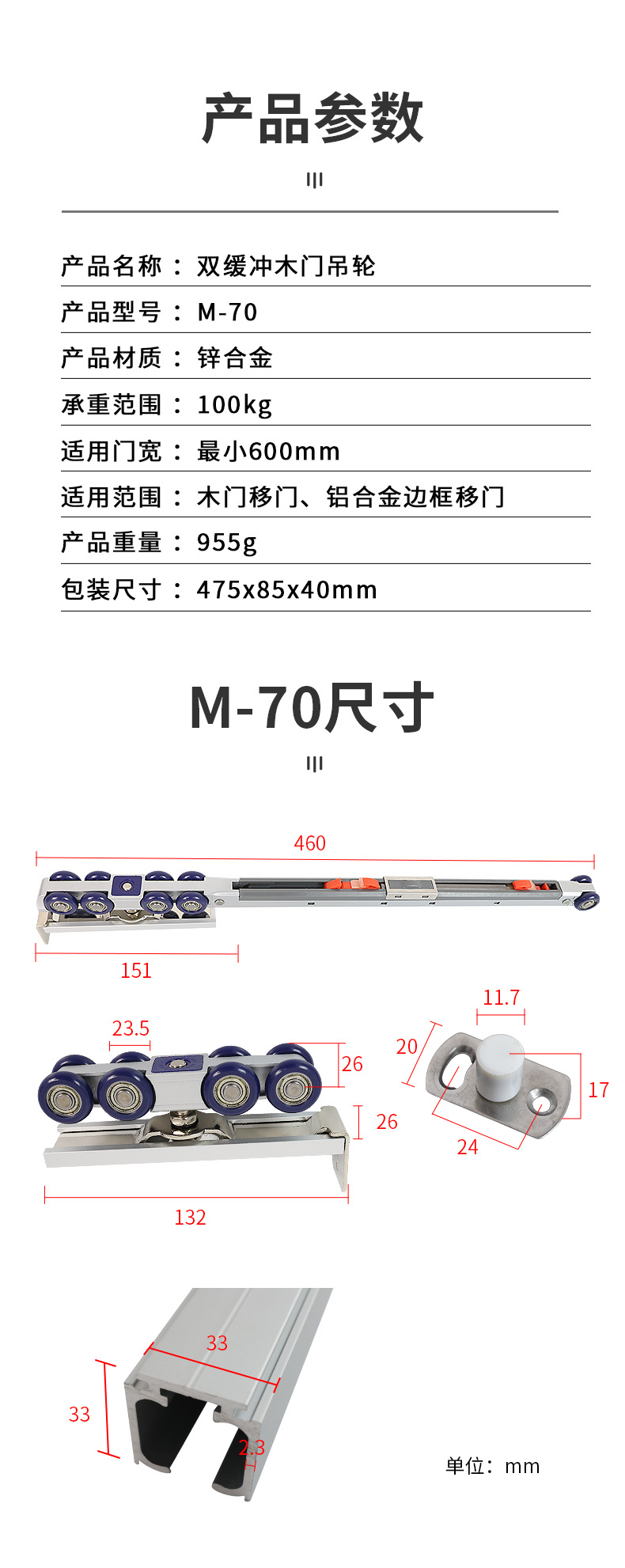 M70 M80 8輪靜音軸承吊輪平移門實木門吊輪