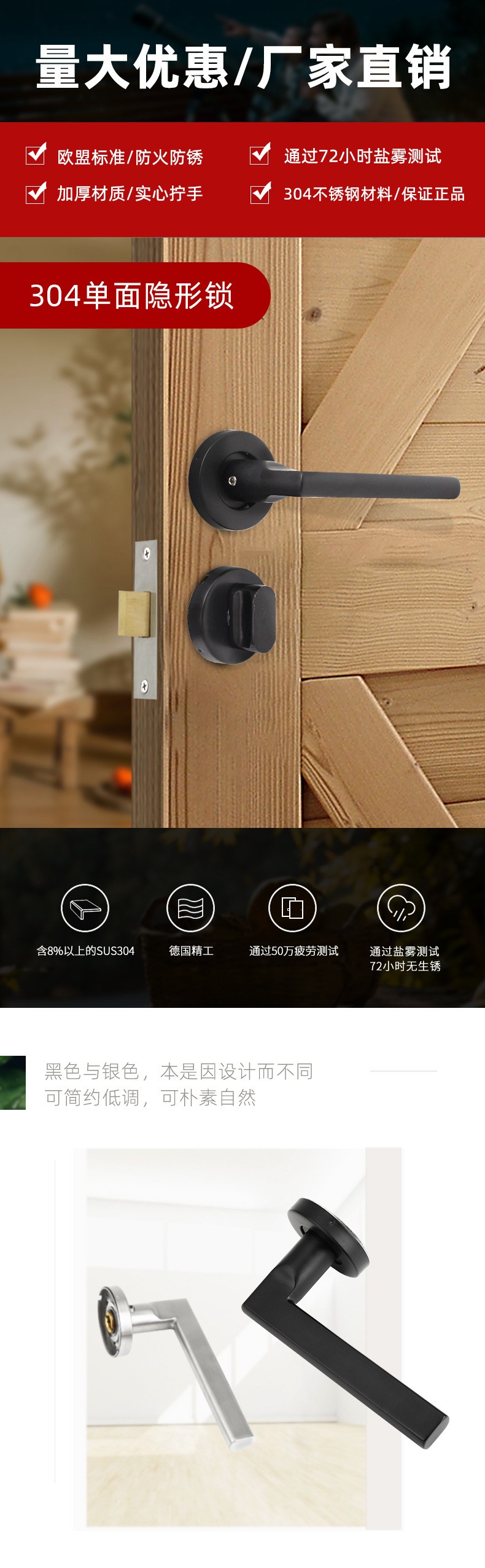RST-07 不銹鋼304美式室內(nèi)門單面暗門鎖