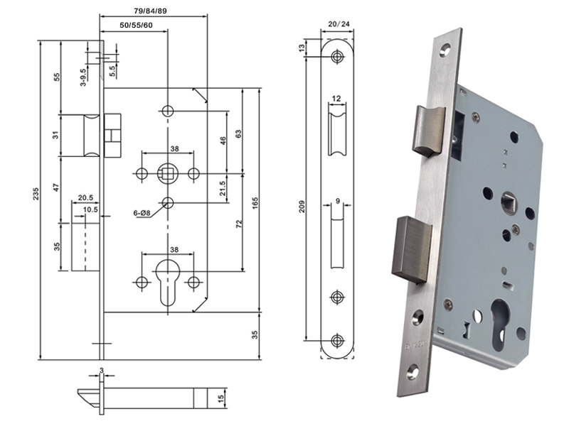 Exterior door mortice door lock Stainless steel 304 mortise security door lock body